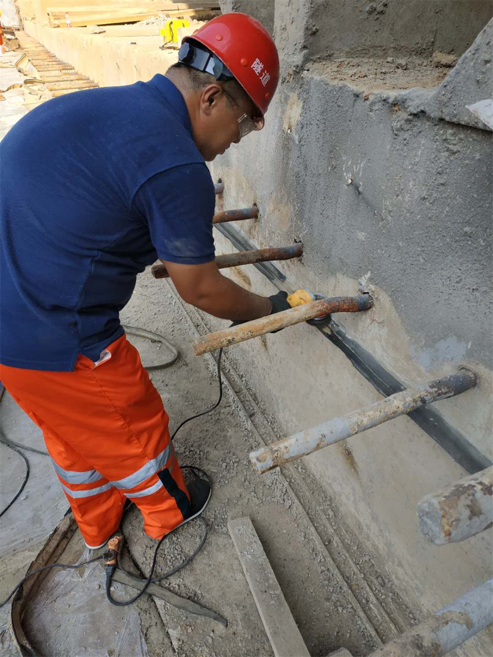 3:切割完毕后对橡胶止水带进行打磨,去除杂物,打磨到漏出新面。