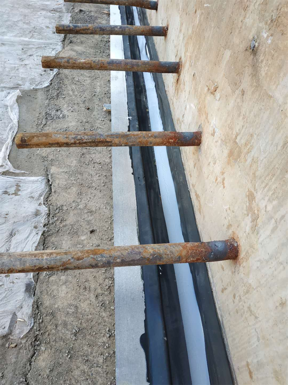 8:养护。浇筑完成后4个小时不得撕扯,打滚,要保持静止平放。养护完成后顶部在粘贴丁基胶带。