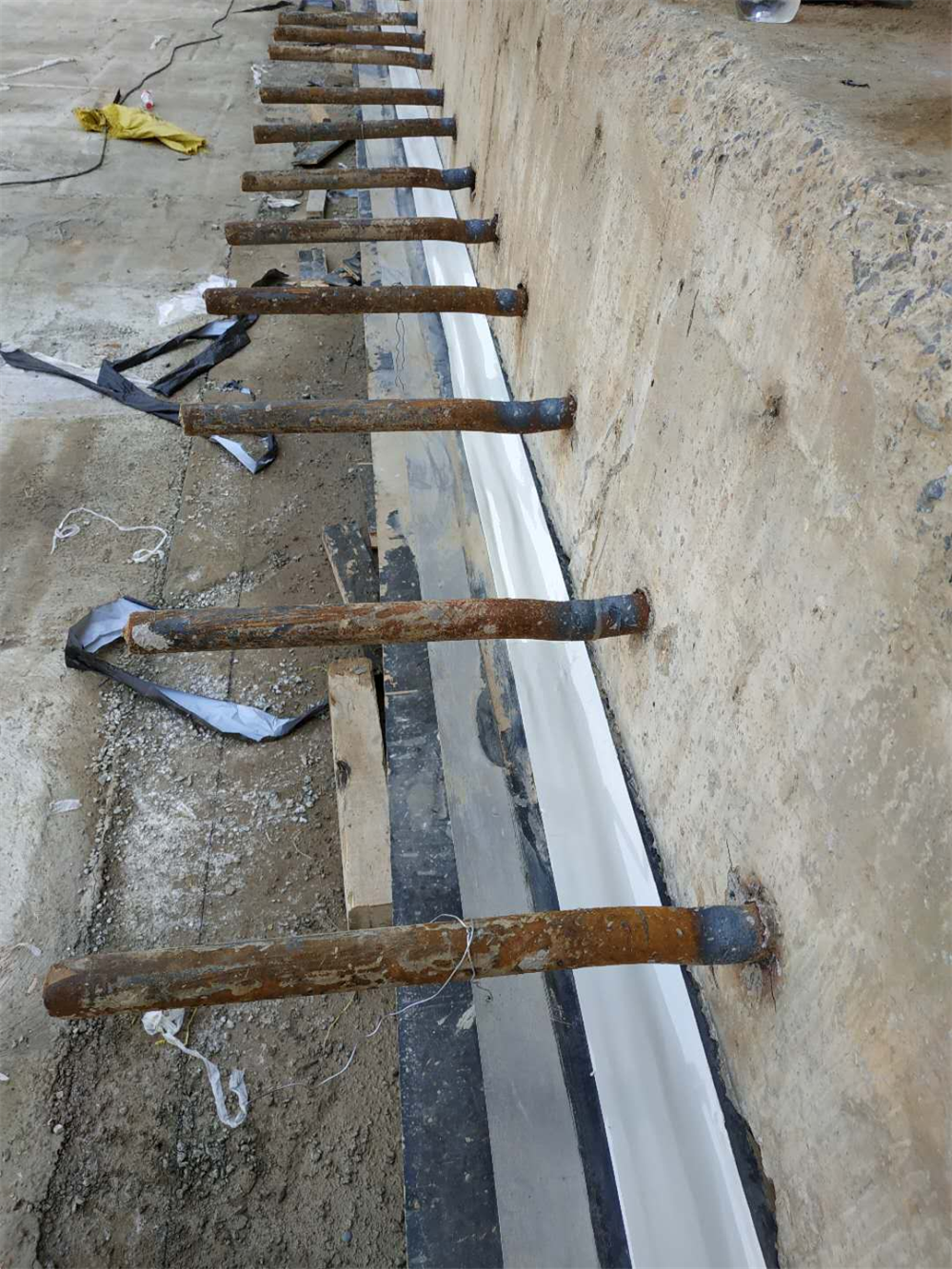 地下工程防水变形缝部位很多在开挖的时候不小心将橡胶止水带破坏掉,常规施工方法1:将止水带切割取出,然后在切槽把新的止水带放进去在注浆。该方法缺点是施工时间长施工成本高。